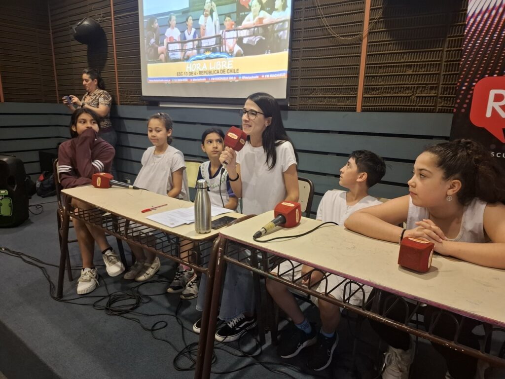 Un Hora Libre diferente: un Hora Libre Distrital. La FM Riachuelo transmitió en vivo desde la Escuela N° 13 DE 4 “REPÚBLICA DE CHILE”, que nos habilitó el espacio para que podamos contar algunas de las tantas experiencias radiales que hicimos desde PROGRAMA REC en el distrito escolar 4.